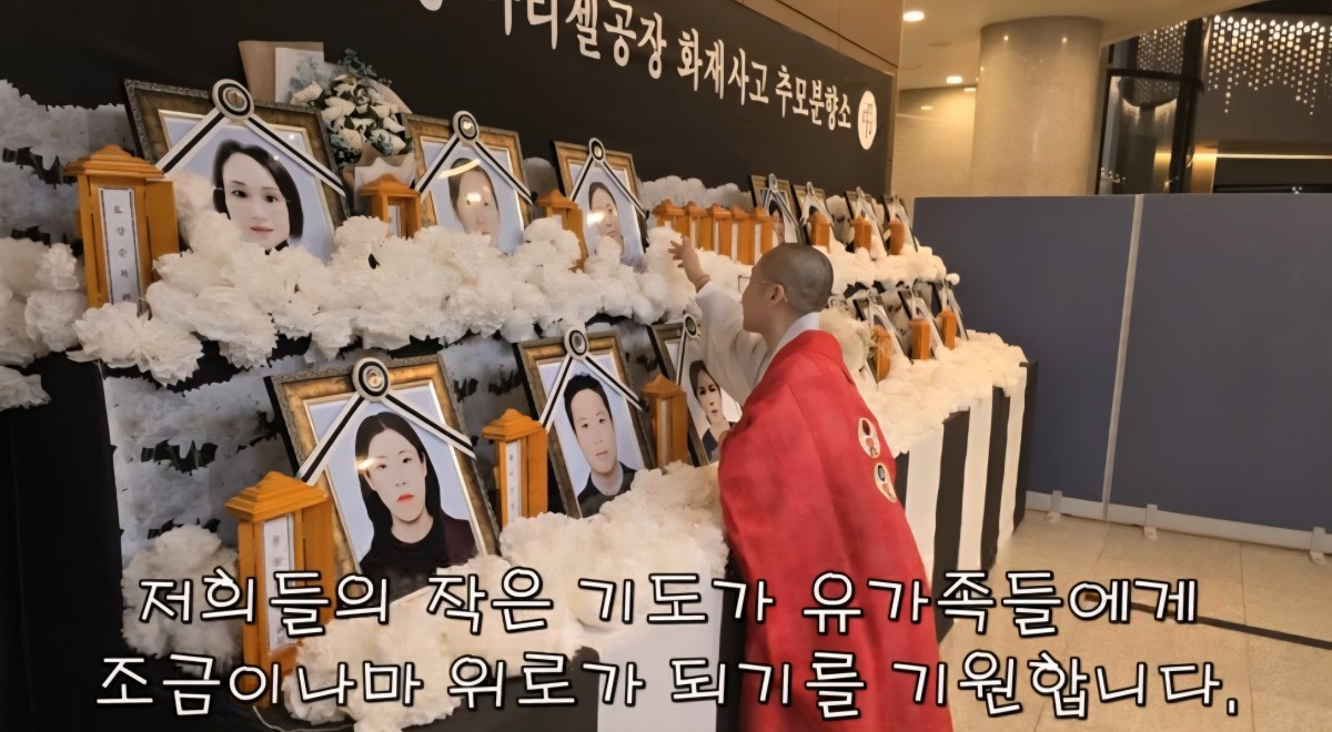 아리셀화재 희생자들을 13주 차 추모하며, 희생자 분들의 극락 왕생을 기원합니다. (관음사주지 향적스님, 법연스님) 페이지 정보 작성자 관음사 작성일2024.11.07 조회830회 댓글0건 본문 https://youtu.be/kUensb2Q3ts?si=AfzWK0QqWwjwLXus 0:00 / 2:30유튜브 바로가기https://www.youtube.com/watch?v=pYBwunPE2bY&list=PPSV아리셀화재 희생자들을 13주 차 추모하며, 희생자 분들의 극락왕생을 기원합니다. 이전글 다음글 목록