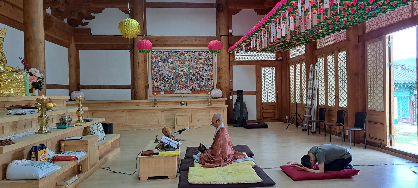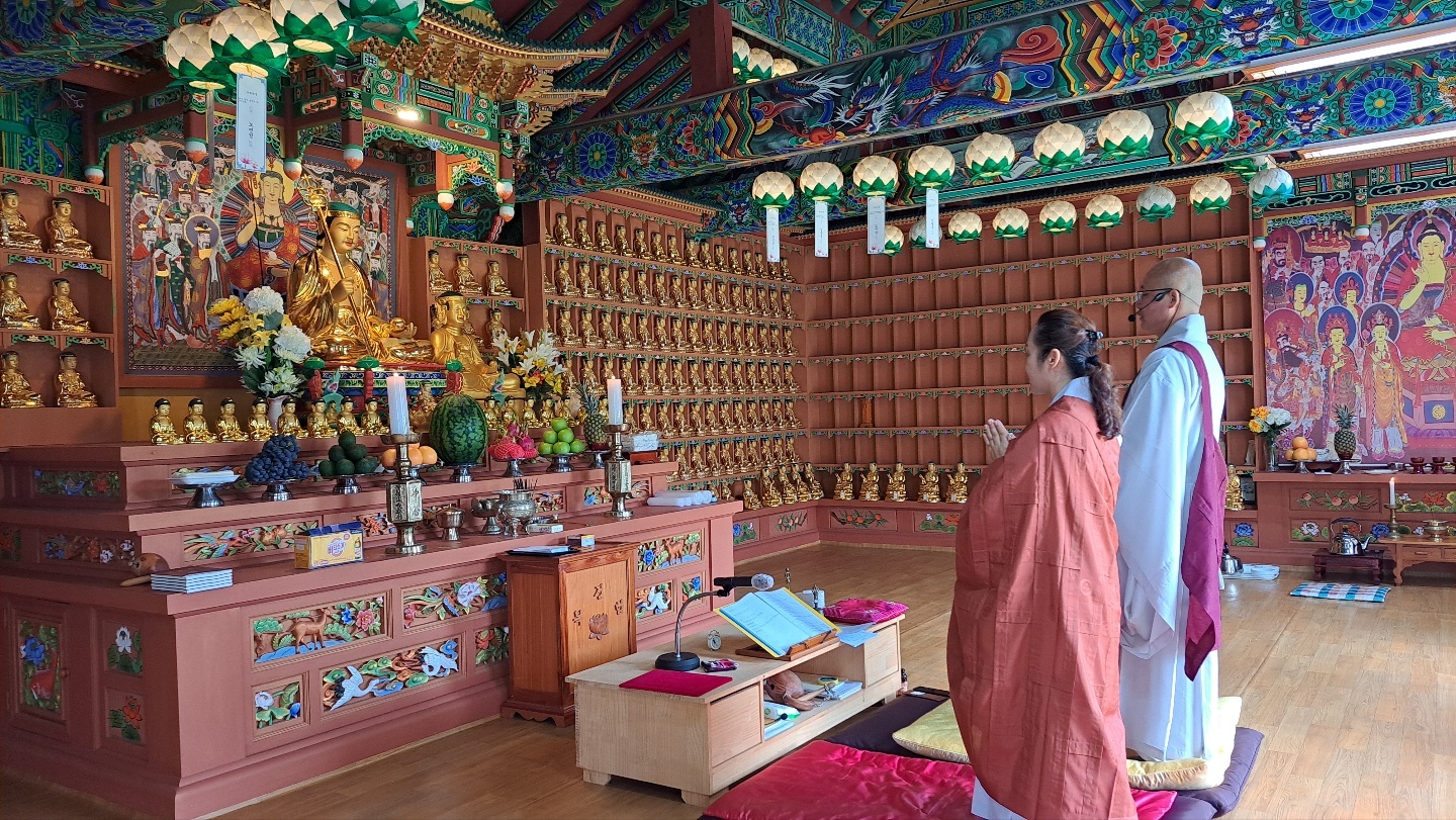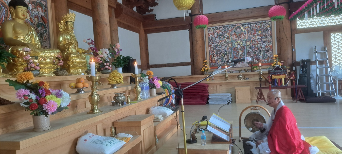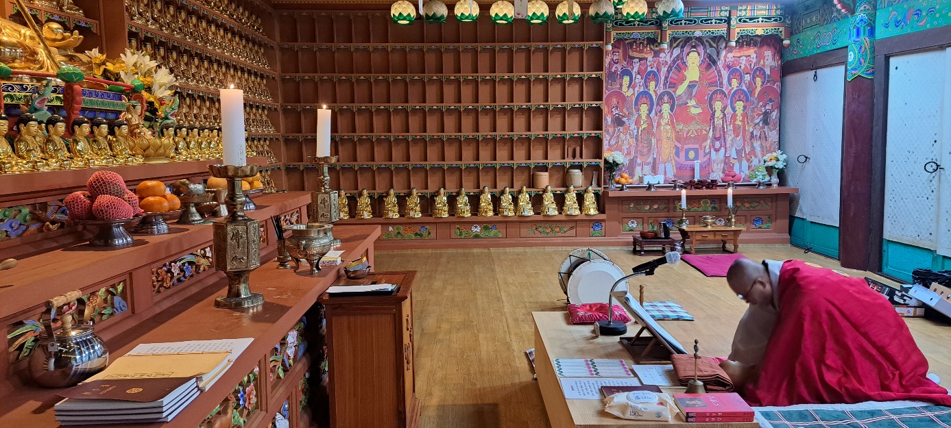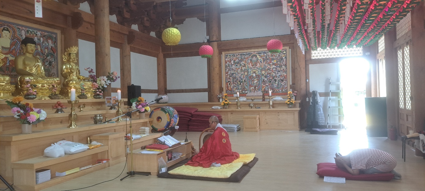 2022년 05월 남원관음사 대웅전에서 새벽 예불올리는 법연스님(부주지)